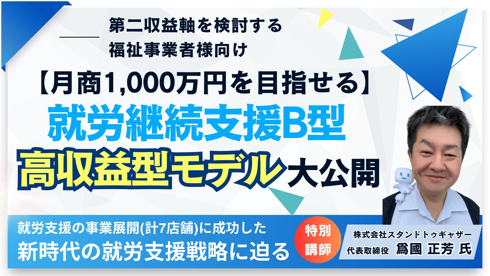 今回本記事でご紹介した、成功モデル企業である株式会社スタンドトゥギャザーの代表取締役 爲國正芳 氏が、就労支援事業の成功事例とそのノウハウを講演するセミナーを開催します 。