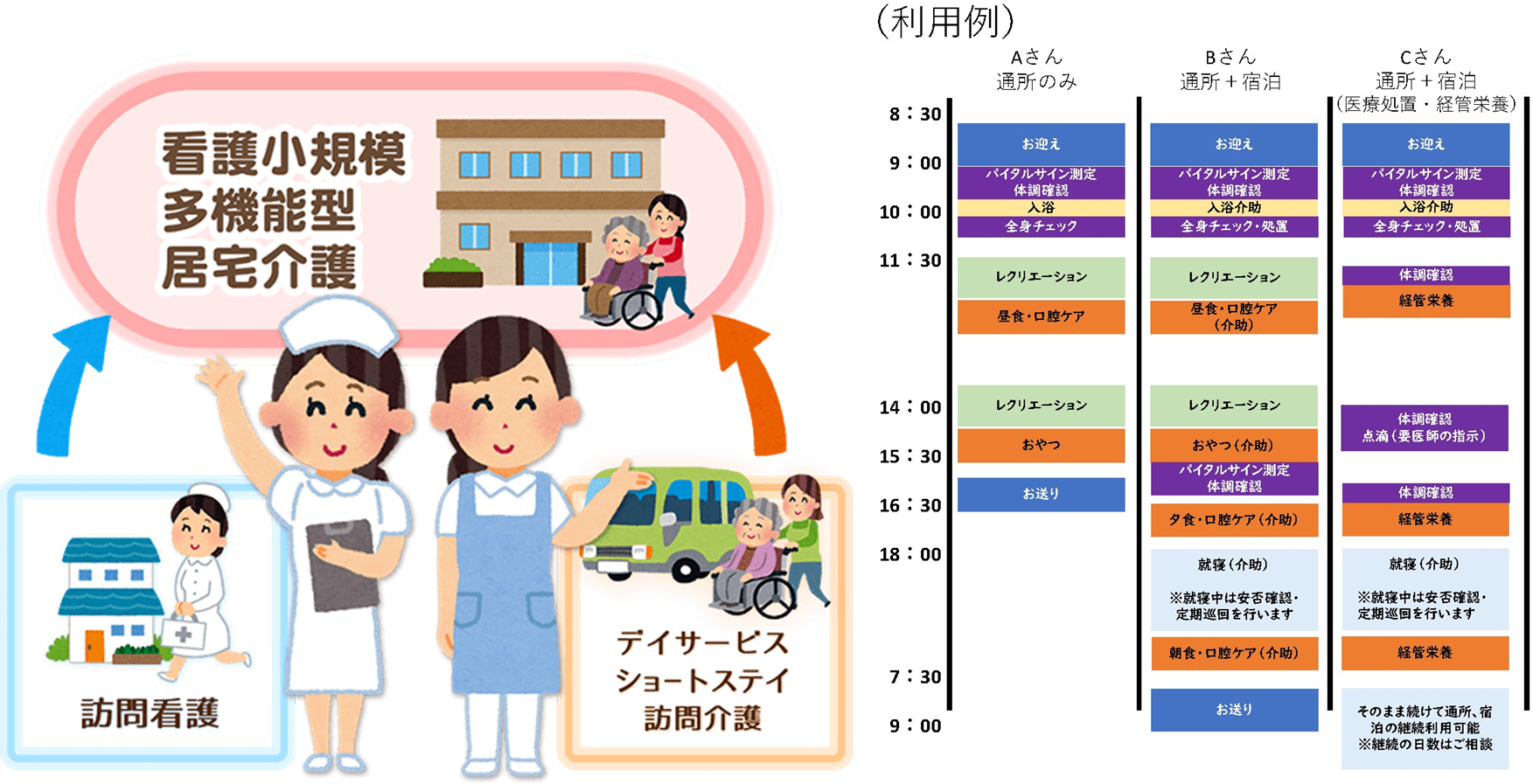 重症度の高い利用者様を受け入れる際はスタッフの負担が増えるため、社内からの反対が出ることもありますが、そこは管理者の方が看護師のフォロー体制を構築し、「手厚い介護・看護を提供する」という理念を徹底することで乗り越えることが可能です。