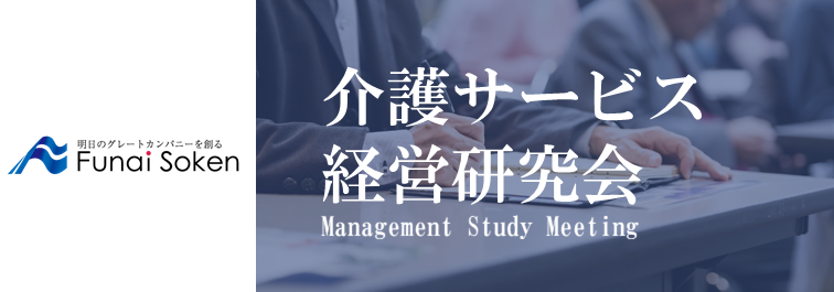 報酬改定に関する知識や業績UP・職員採用に関する鮮度の高い情報をお伝えしています。介護業界30・会員150名超・プライム上場企業の船井総合研究所が主催する介護事業経営者限定の会員制勉強会。